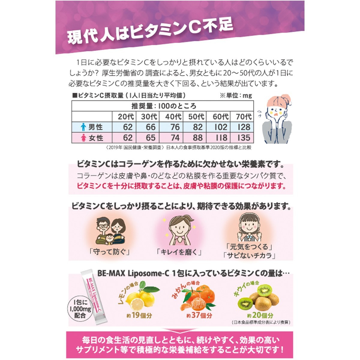 そんなビタミンCの理想的な摂り方を考えたサプリメントがBE-MAXから誕生!