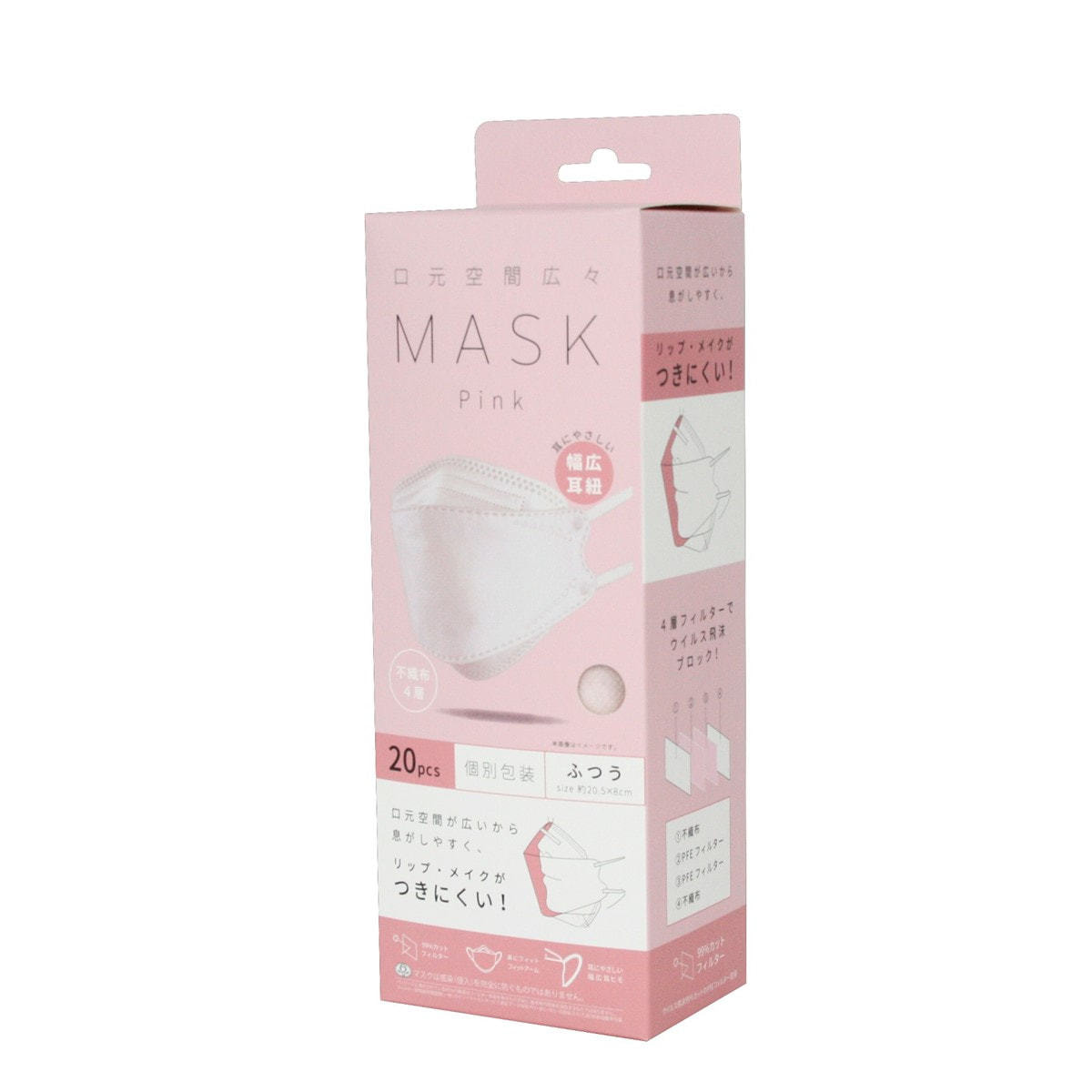 商品名:口元空間広々マスク ピンク 20枚入り(個包装)