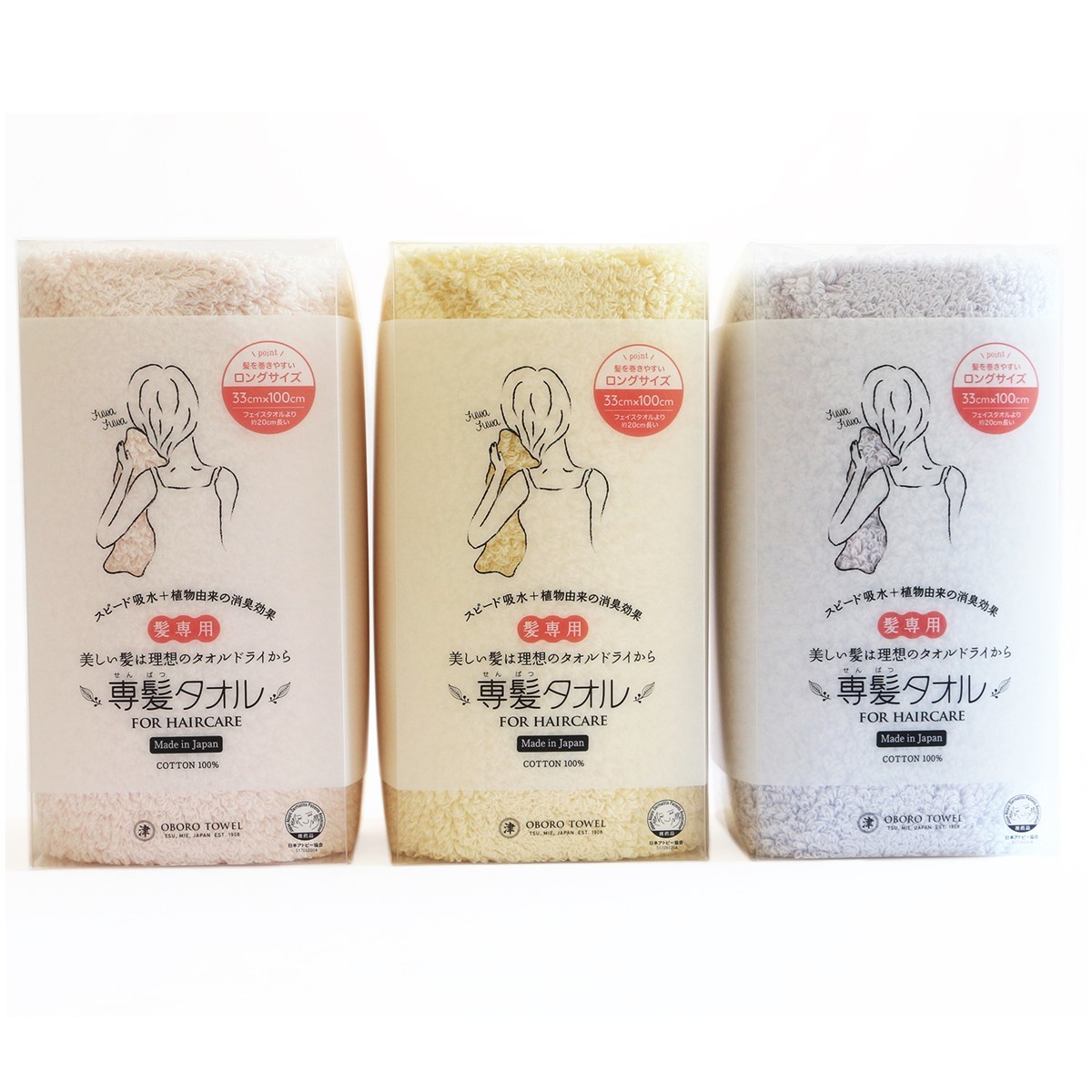 髪を美しく保ちたい女性のために、限りなく髪への負担が少なくなるよう「吸水スピード」と「吸水量」にこだわり、100年の伝統技術と特許申請技術から生まれた髪専用タオルです。