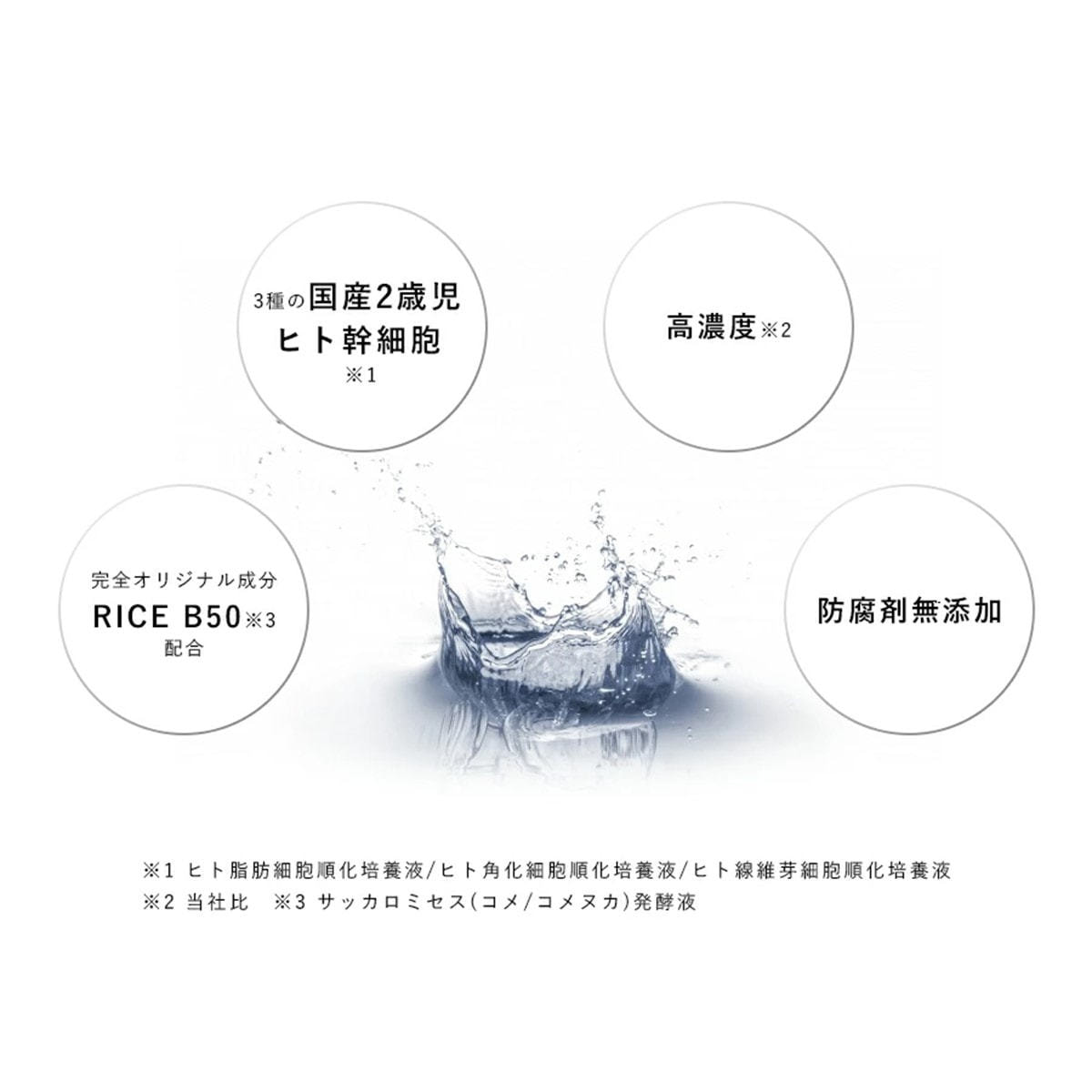お米由来の美容成分と、赤ちゃん由来のヒト角化細胞順化培養液※を配合した贅沢美容液で、ハリ・ツヤのある肌へ導きます。