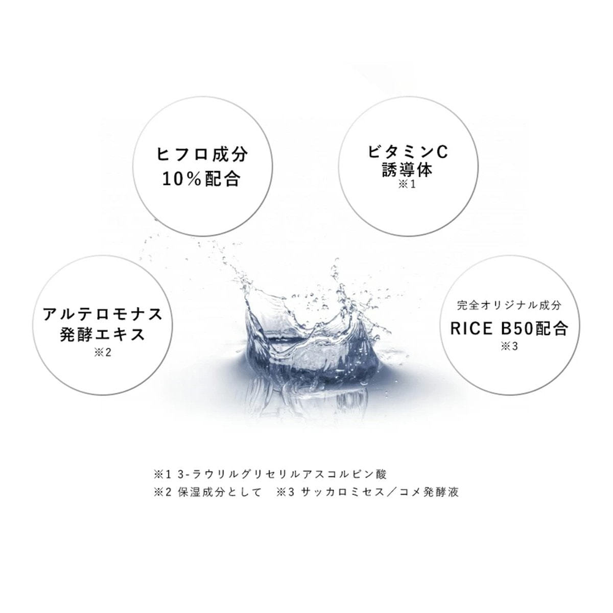水、グリセリン、トリエチルヘキサノイン、パーフルオロヘキサン、BG、ダマスクバラ花水、スクワラン、グリコシルトレハロース、ペンチレングリコール、パーフルオロパーヒドロフェナントレン、加水分解水添デンプン、パーフルオロデカリン、ジグリセリン、トレハロース、変性コーンスターチ、ベヘニルアルコール、アラキジルアルコール、シア脂、ステアリン酸グリセリル、パルミチン酸エチルヘキシル、パンテノール、ステアリン酸、バチルアルコール、ペンタステアリン酸ポリグリセリル-10、パーフルオロジメチルシクロヘキサン、アラキルグルコシド、加水分解キャッサバ塊茎エキス、カルボマー、ヒドロキシプロピルメチルセルロースステアロキシエーテル、水酸化K、ステアロイルラクチレートNa、トリ(カプリル酸/カプリン酸)グリセリル、レシチン、デュナリエラサリナエキス、マンダリンオレンジ果皮エキス、ペンテト酸5Na、ジメチルシリル化シリカ、サッカロミセス/コメ発酵液、パントラクトン、ヒアルロン酸Na、パルミトイルトリペプチド-5、マルトデキストリン、ウンカリアトメントサエキス、3-ラウリルグリセリルアスコルビン酸、ケイ酸Na、アルテロモナス発酵エキス、トリフルオロ酢酸テトラデシルアミノブチロイルバリルアミノ酪酸ウレア、パルミトイルジペプチド-5ジアミノブチロイルヒドロキシトレオニン、塩化Mg、クエン酸、ソルビン酸K、安息香酸Na、エチルヘキシルグリセリン、トコフェロール、フェノキシエタノール、香料