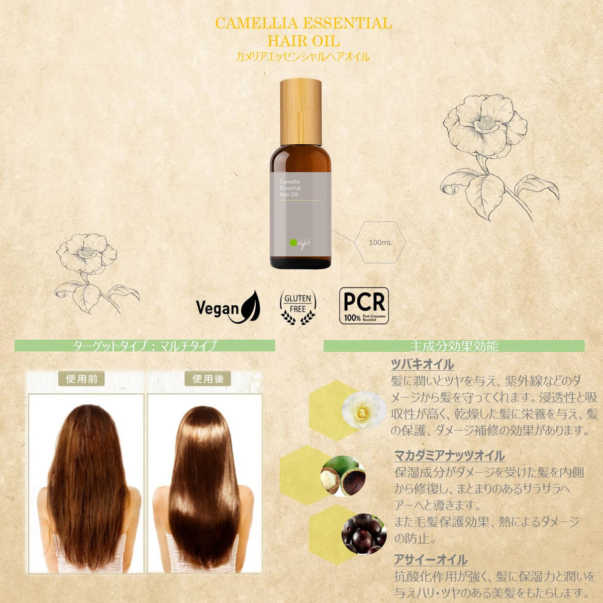 オーライト ヘアオイルCL(カメリア) 100mL