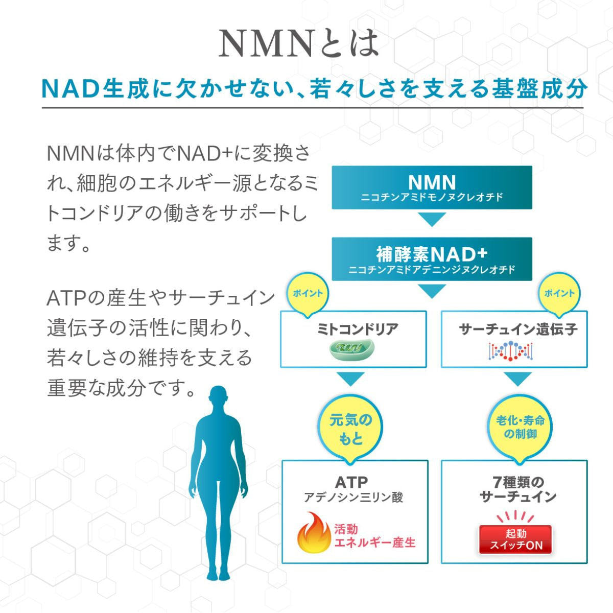 NMNを高純度で含有し、若々しく健康なライフスタイルをサポート