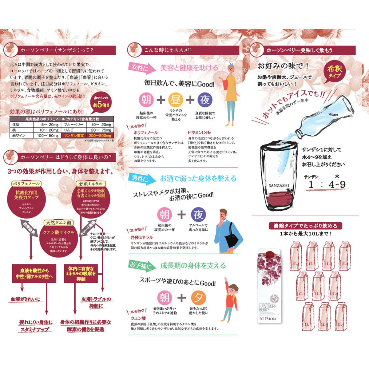 サンザシ1に対して、水4~9を加えお召し上がりください。