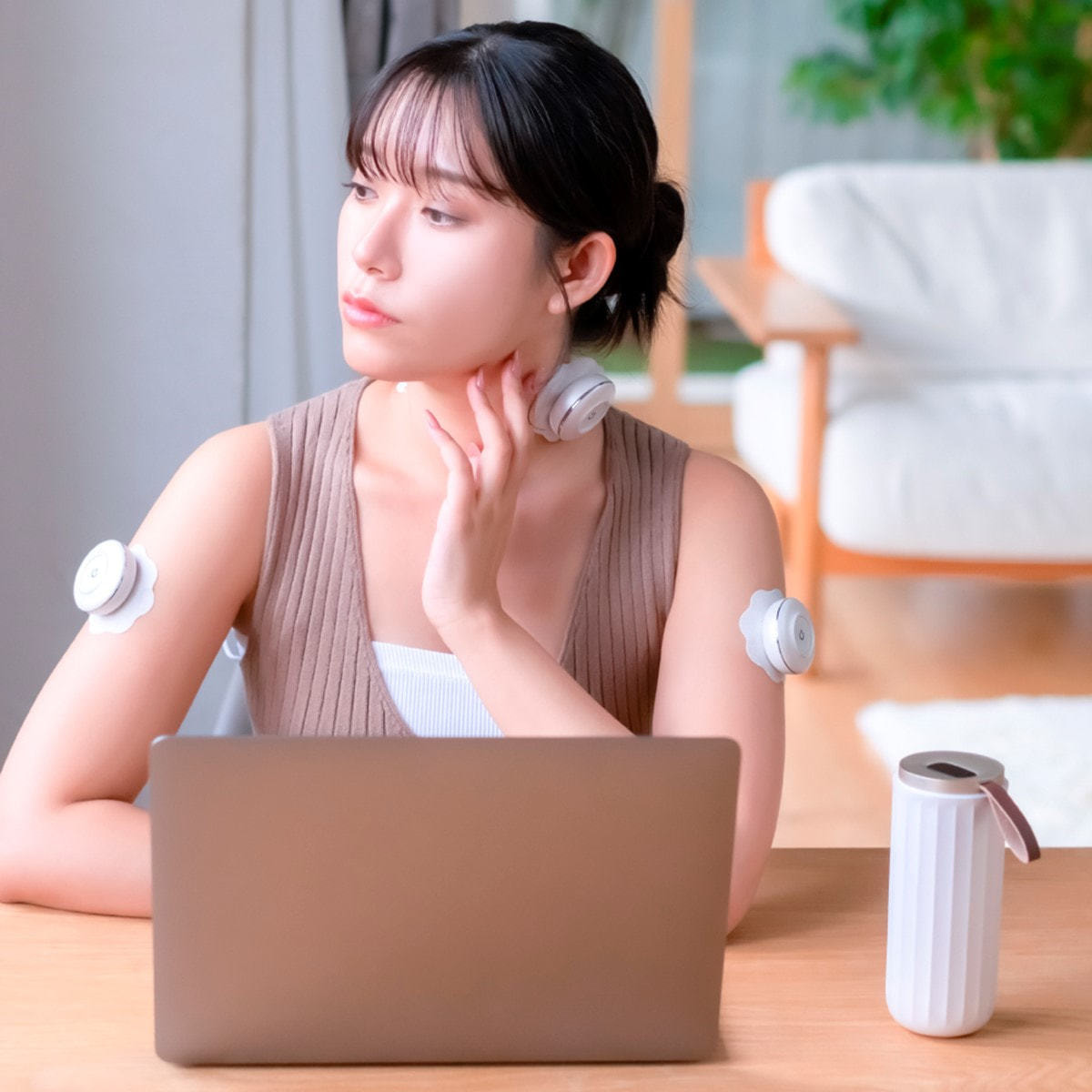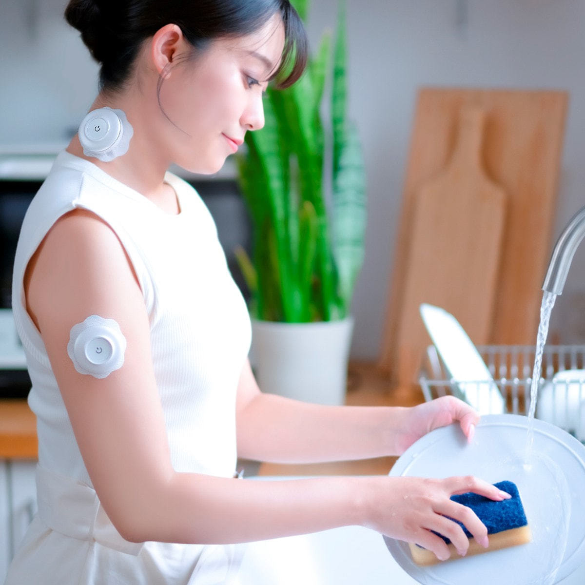 本体とパッチは磁石でピタッと装着できるようになっています。簡単に取り外しすることができ、背中などの手の届きにくい所にもストレスなく装着できます。本体部分は約29gと、装着していることを忘れるほど軽いので、首や肩などにも気兼ねなくご使用いただけます。