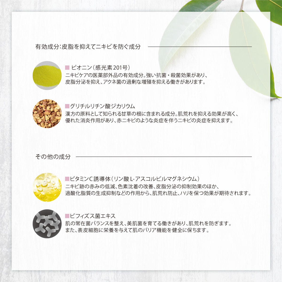 余計な皮脂や肌トラブルを抑え、ニキビができにくい健やかな肌環境へ導きます。