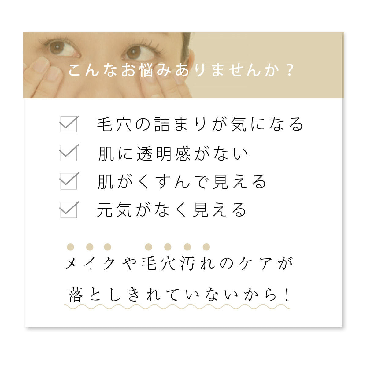 角栓やメイク汚れにしっかり馴染み、うるおいを残しながら、毛穴の奥までクリアに洗い上げます。