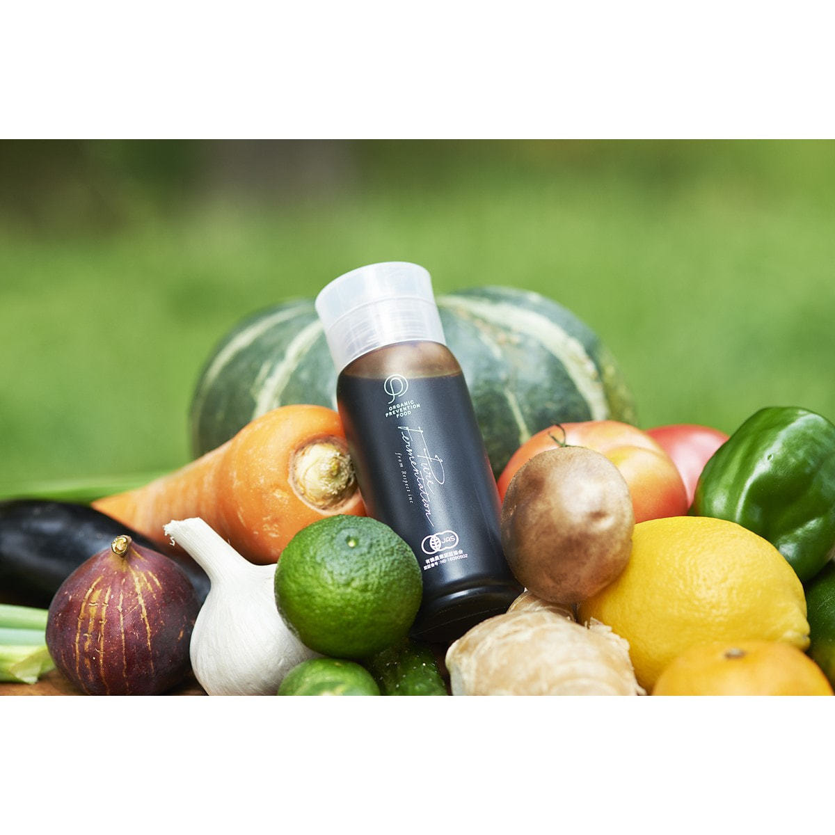 34種類の有機JAS認定の野菜と果物を、皮や種、根や葉などすべて丸ごとじっくり発酵。
