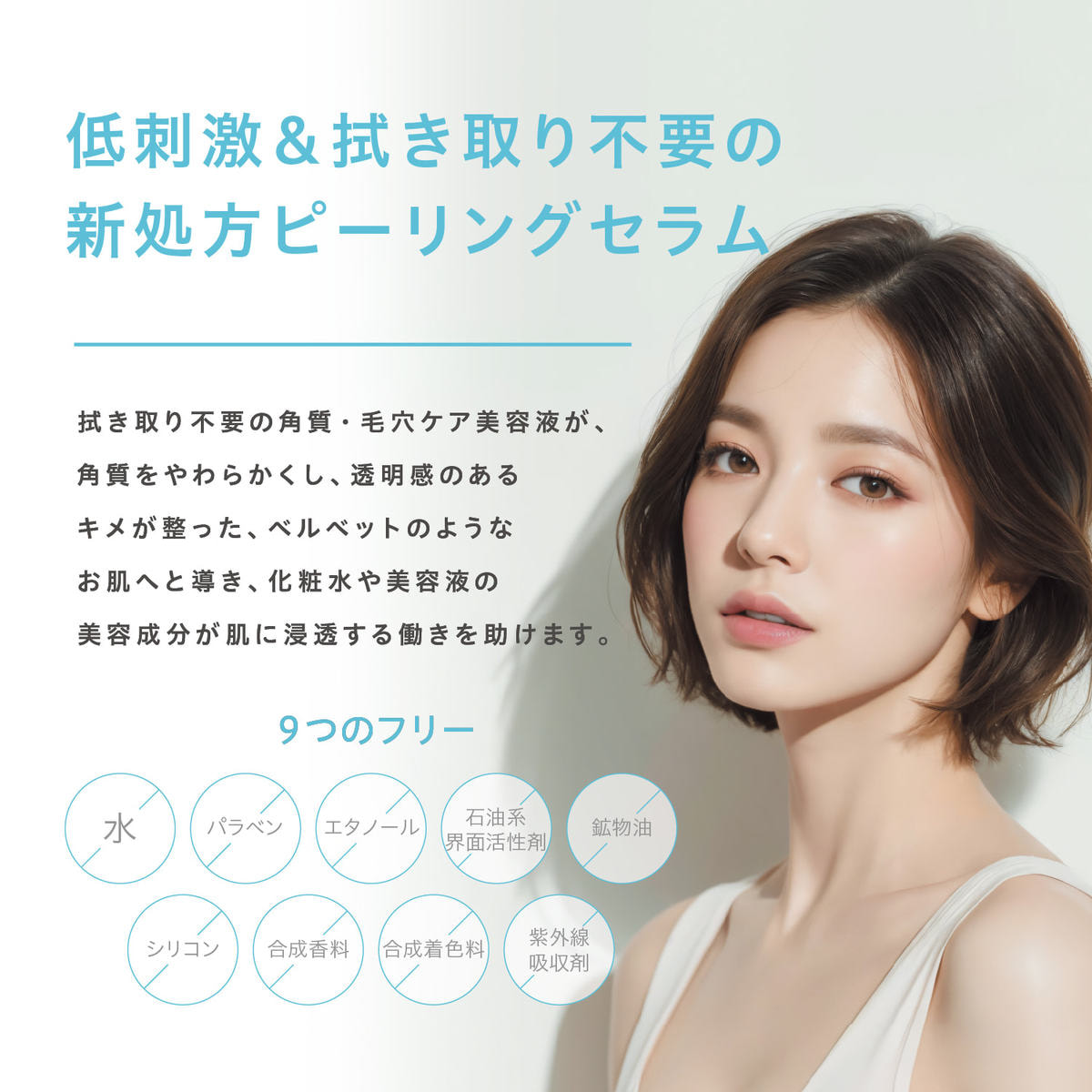 低刺激&拭き取り不要の新処方ピーリングセラムです。