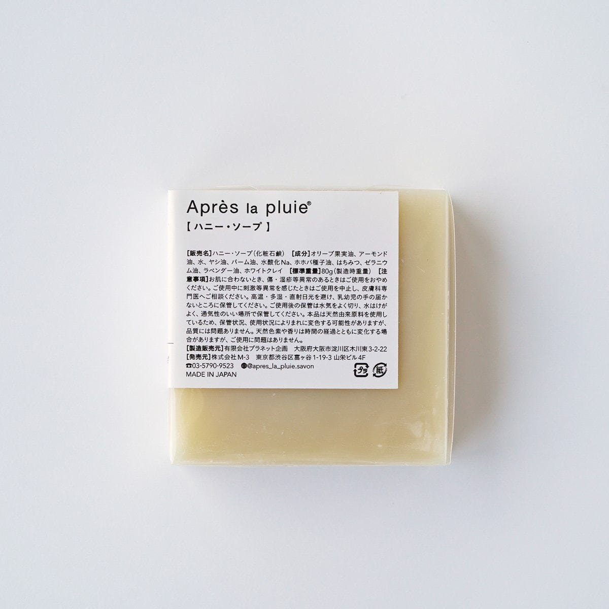 商品名:Apres la pluie(アプレラプリュイ) Honey Soap【ハニーソープ】天然はちみつ石けん