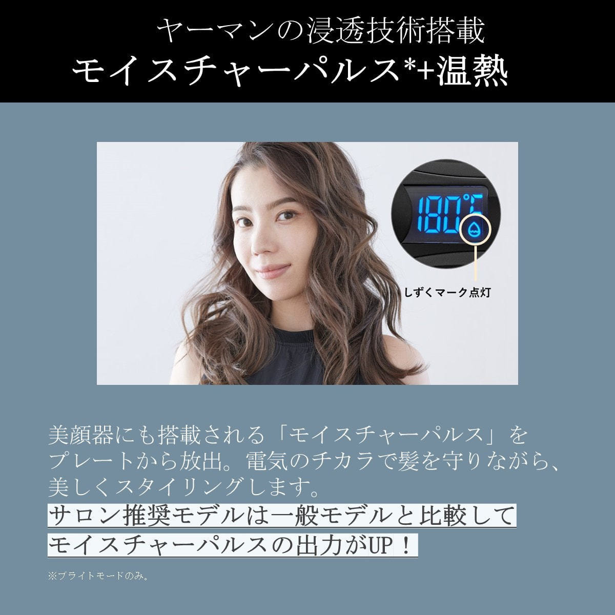 ヤーマン独自のモイスチャーパルス機能&ブラックシリカ含有プレートが、うるおいのあるツヤやかな髪に導きます。