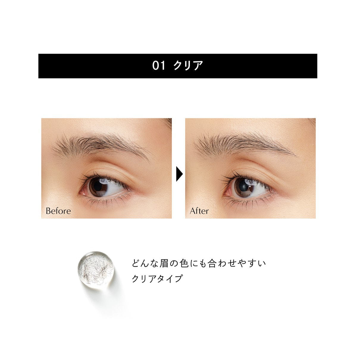どんな眉の色にも合わせやすいクリアタイプ。