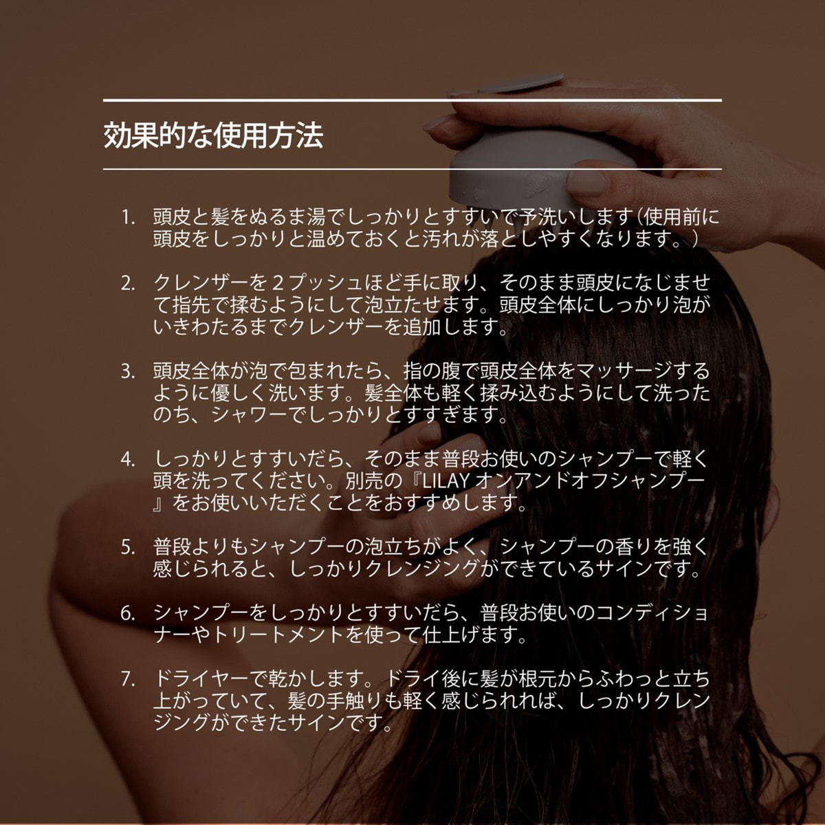 頭⽪・⽑⽳・髪の汚れを定期的にオフし、頭⽪頭髪環境をリセットする習慣づくりの重要性をお客様へ提案するためのアイテム。