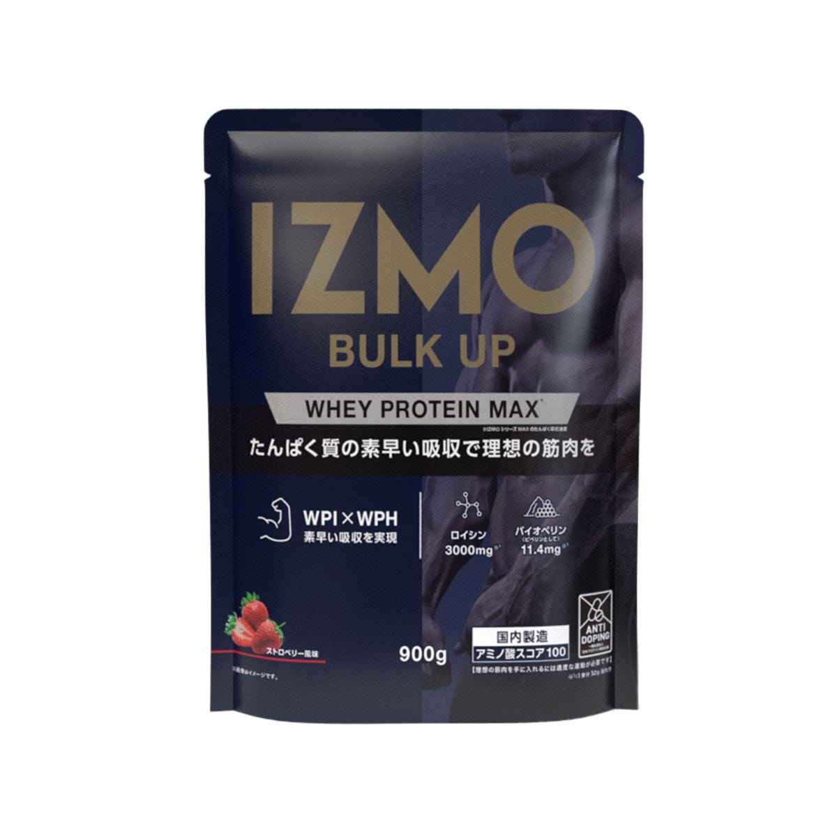 商品名:IZMO バルクアップ ホエイプロテイン マックス(ストロベリー風味)900g