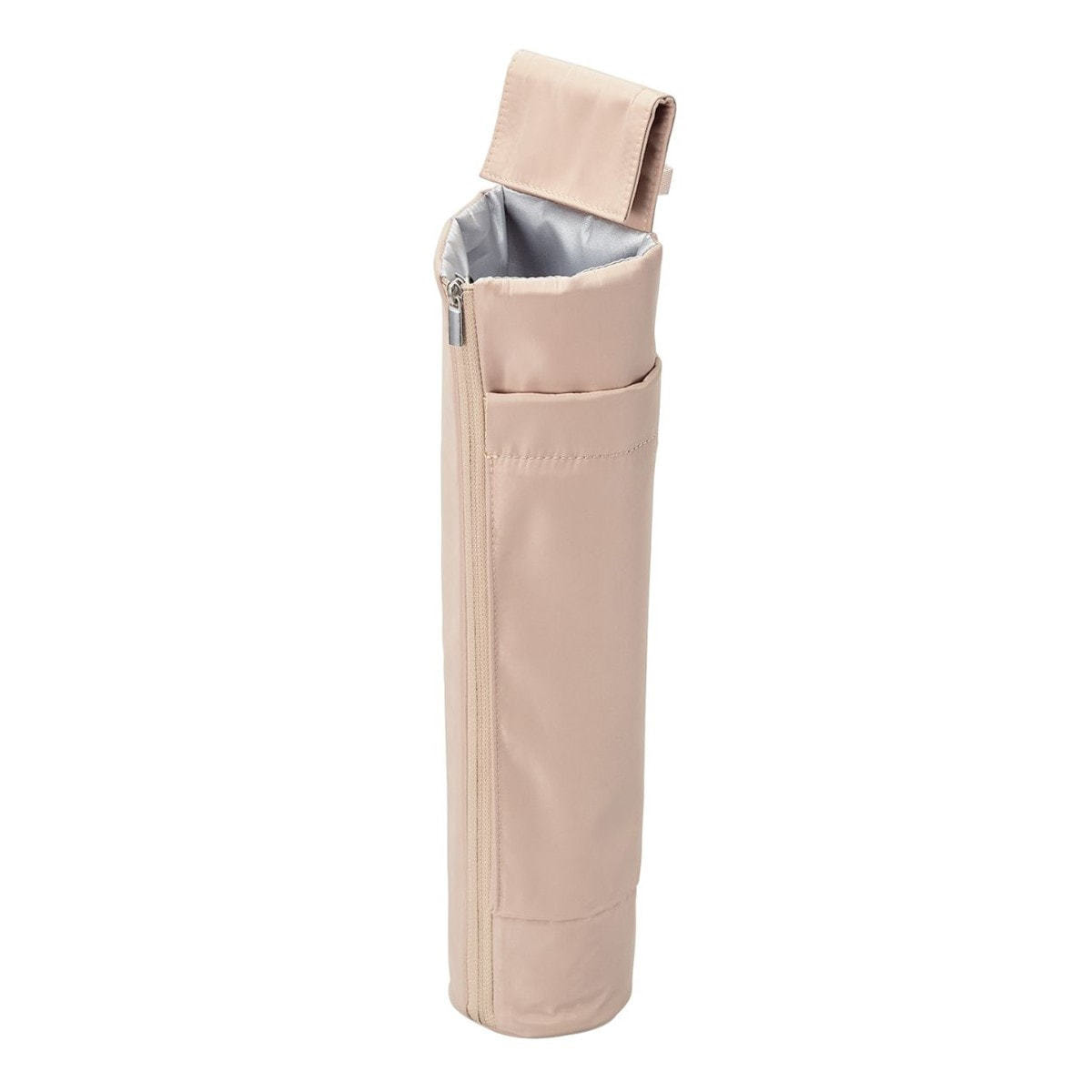 側面ファスナーを開き洗面台や机に置くと、スタイリング中のヘアアイロンの一時置きにも活躍します。