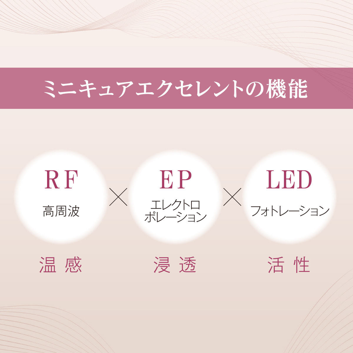 RF(高周波…温感)×EP(エレクトロポレーション…浸透)×LED(フォトレーション…活性)