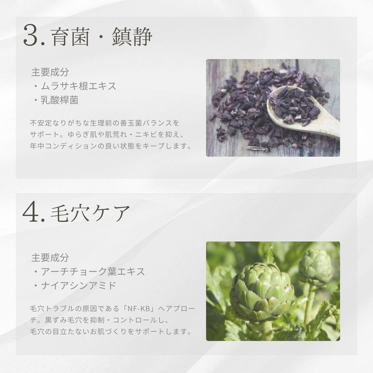 肌のpHを弱酸性に保ったり、うるおい成分を生成したり、悪玉菌の繁殖を抑えて肌のバリア機能を守る働きをします。 乳酸桿菌の力で「菌活スキンケア」を行うことで肌の乾燥やトラブルが改善し、健やかな肌が続きます。
