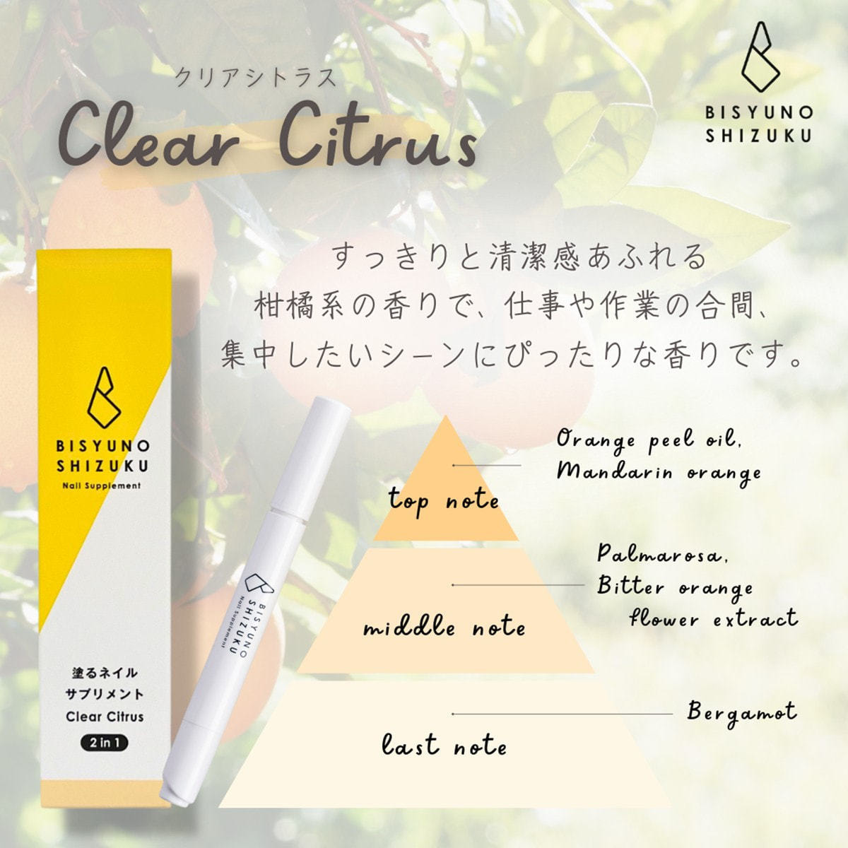 商品名:美手の雫 ネイルサプリメント 2in1 fg クリアシトラスの香り 2.8ml