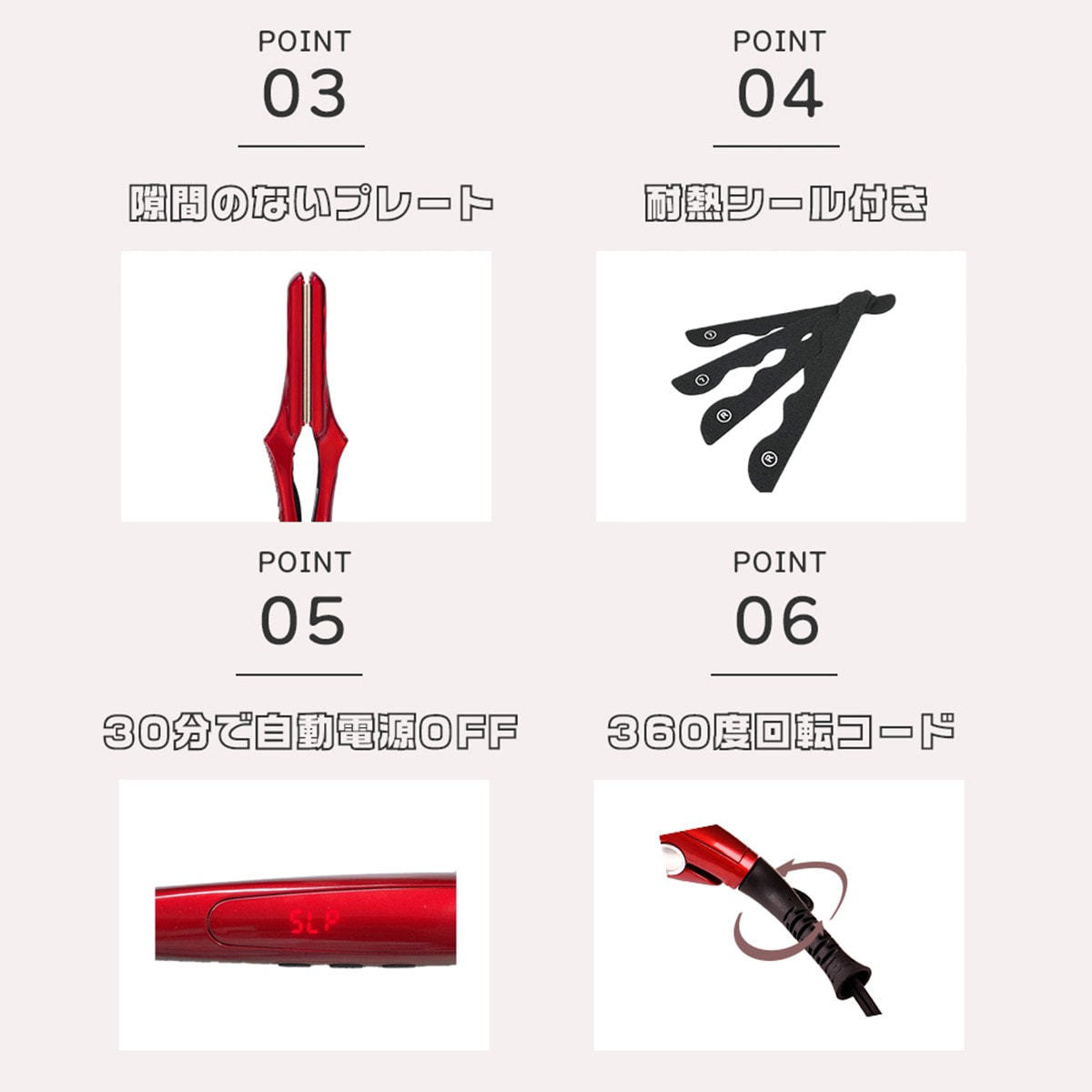 ・パワーオフ機能(30分→60分):従来のオートパワーオフ機能を働かせるための センサー(カラカラ音)がなくなり、60分後に自動で電源が切れる仕様となります。 完全デジタル化の為、継続してご使用になる場合は再度電源ボタンを押してください。温度記憶機能の追加、前回使用した温度を記憶し、電源を入れた際再度同じ温度で温度上昇を開始していきます。