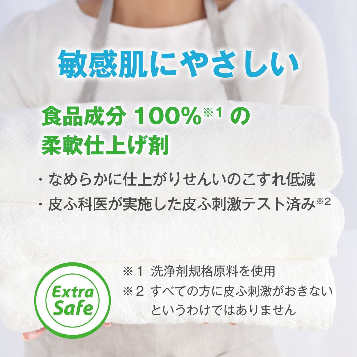 皮ふ科医が実施した皮ふ刺激テスト済み※で敏感肌にもやさしい柔軟仕上げ剤です。