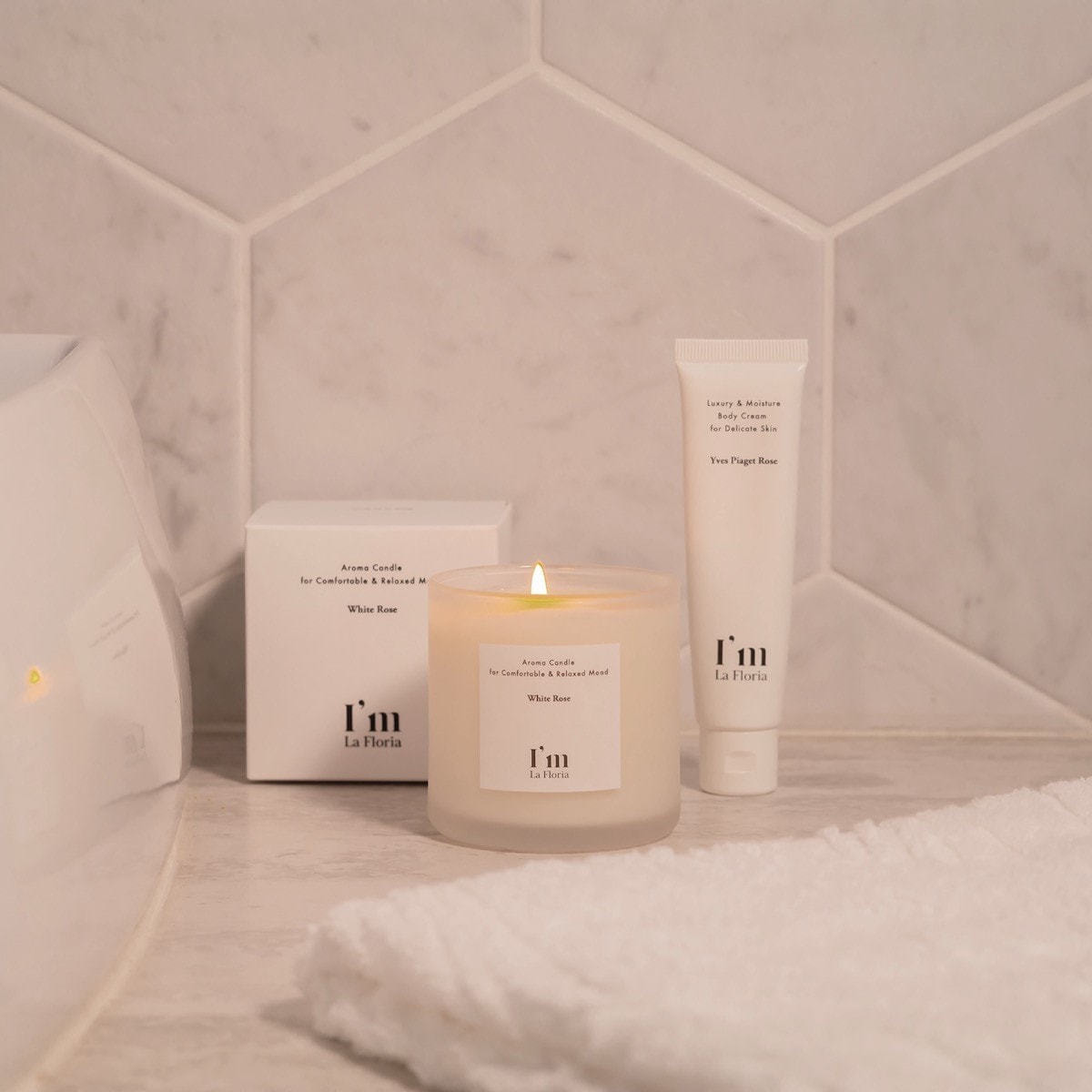 商品名:アイム ラフロリア アロマキャンドル 160g(ホワイトローズの香り)