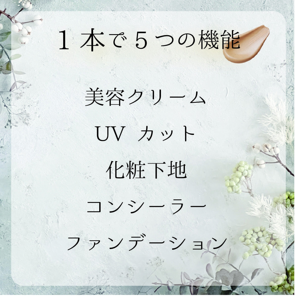 美容クリーム、UVカット、化粧下地、コンシーラー、そしてファンデーションとこれ1本で5つの役割を果たします。