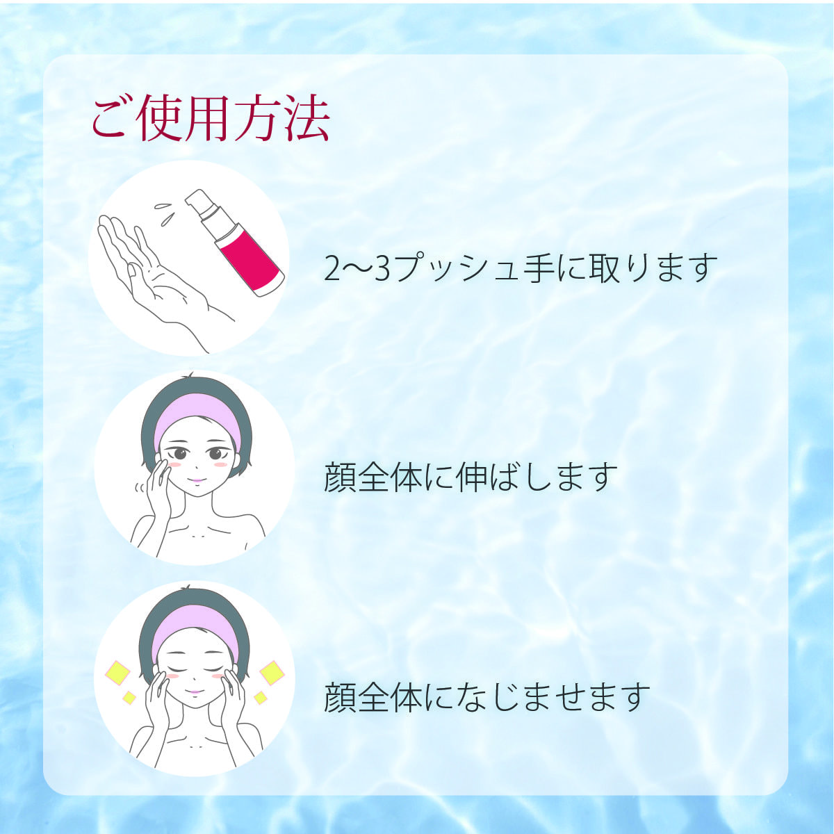 3.顔全体になじませます。(気になるところに部分的にもお使いいただけます。)
