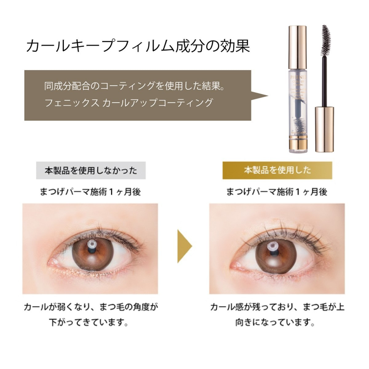 独自開発のカールキープフィルム成分がまつ毛1本1本を特殊なフィルムで包み、
