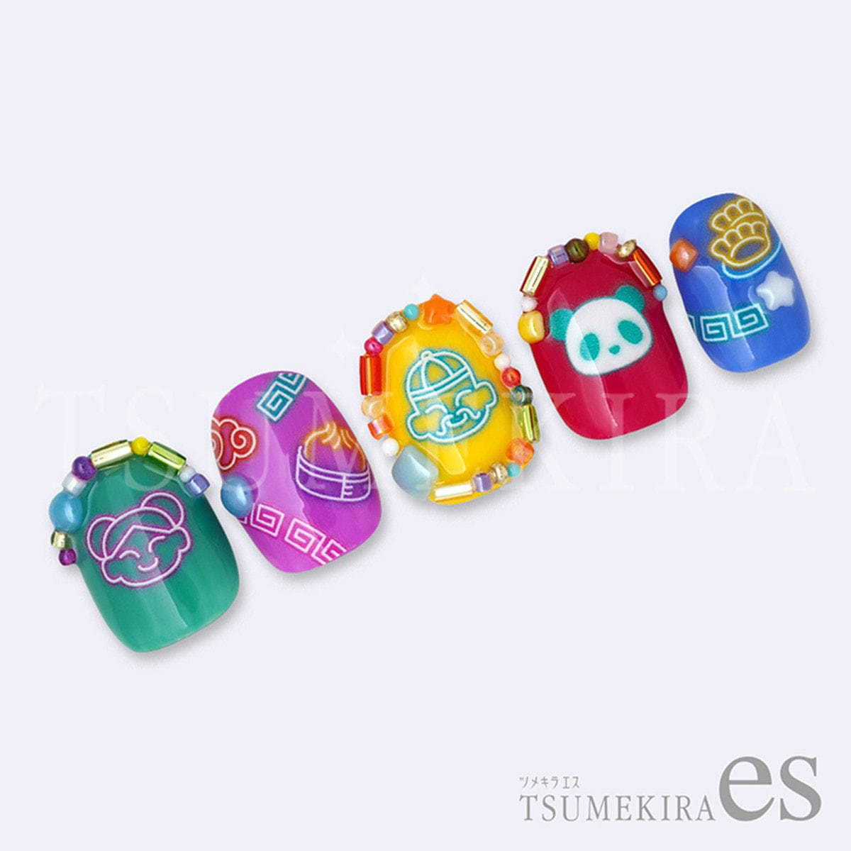 まるで中華街に浮かび上がるきらびやかなネオンサインのようなシートができました!ダークカラーはもちろん、パステルカラーなどどんなネイルカラーにも映えること間違いなしです。