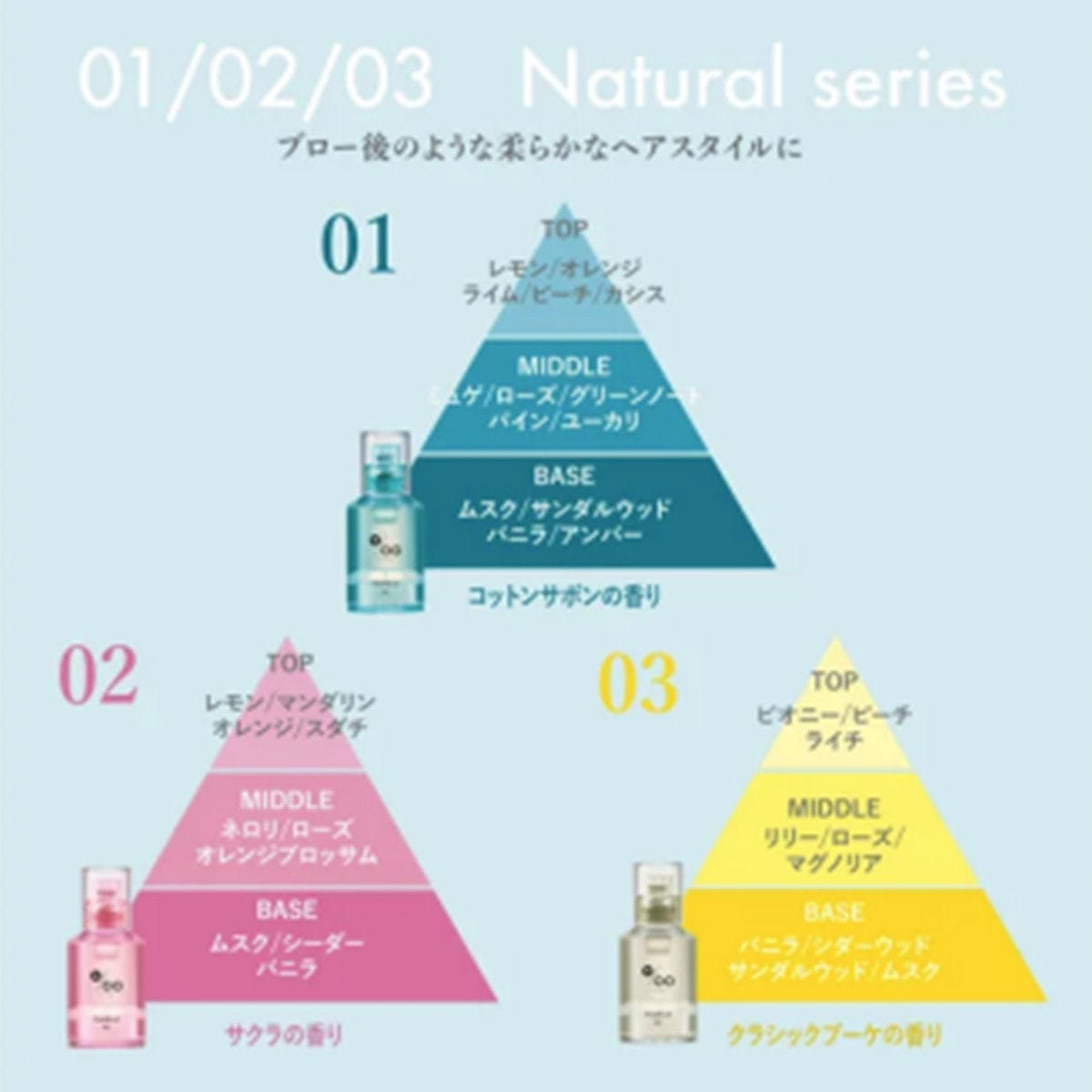 風に揺れる桜の木々のような切なく甘く優しい香りが、どこか懐かしく幻想的な印象を演出します。