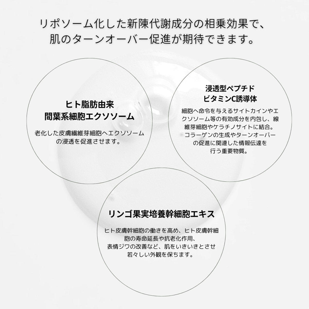 エクソソーム、ヒト幹細胞培養液など、豊美容成分を豊富にブレンド。