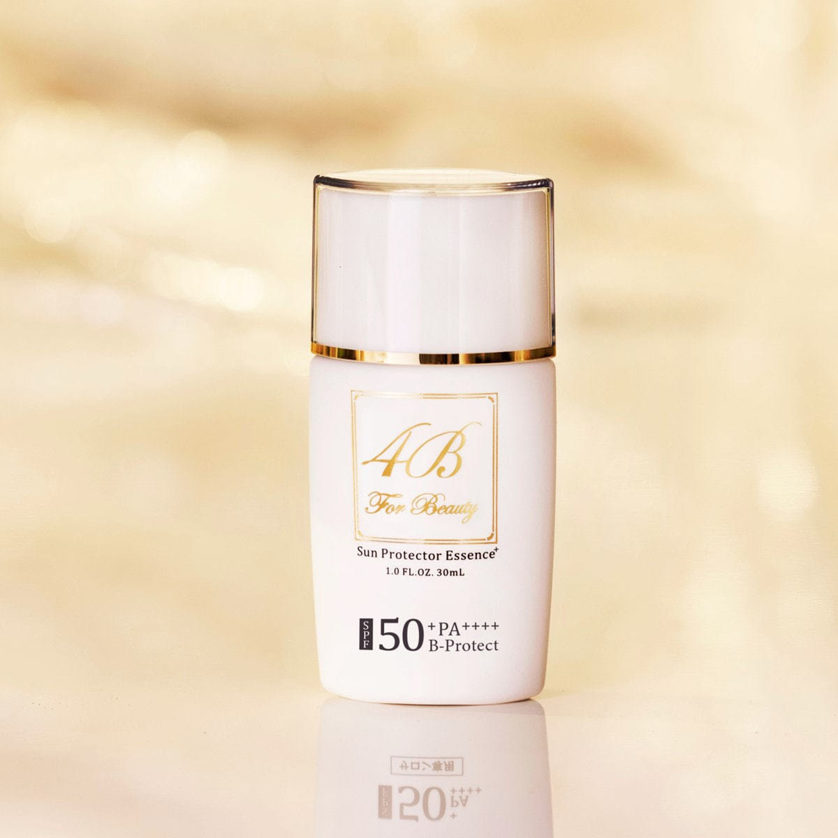 4Bサンプロテクターエッセンス+は、SPF50+PA++++で紫外線をブロックしながら、ビルベリー葉エキス、ヒト歯髄細胞順化培養液、リンゴ果実培養細胞エキスといった美容成分を配合。