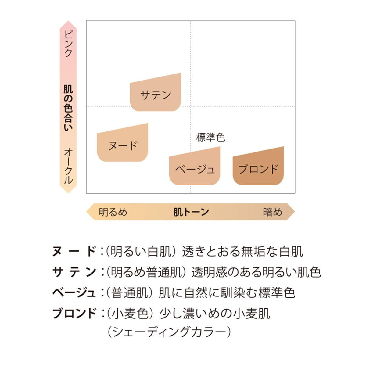 下地であらかじめ肌をトーンアップしてからの使用を前提としているため、半トーン暗めに調整されています。