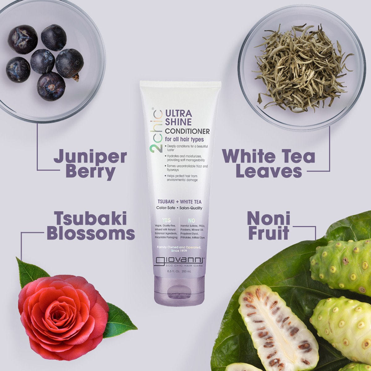 ノニエキスが髪にうるおいを与え、大気の乾燥やブロー時のヒートダメージ、紫外線などから守りながら、ジュニパーベリーが自然な指通りをもたらします。