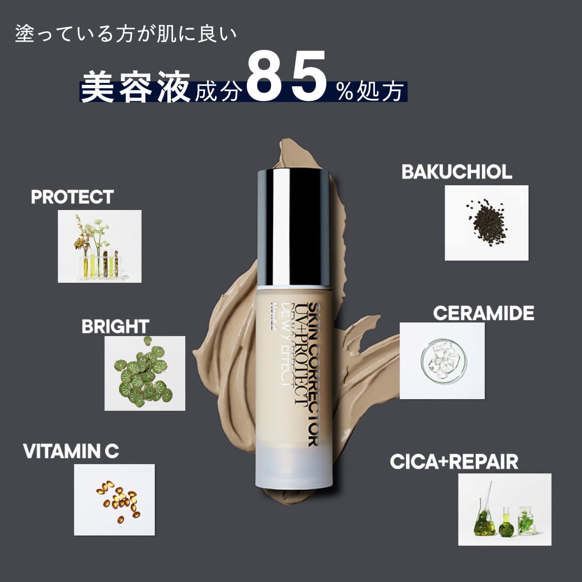 100%天然成分、85%美容液で作り上げた贅沢処方でありながら、強力なUVカット効果に加え、ブルーライト、花粉やPM2.5、乾燥などのさまざまな外的要因から肌をプロテクト。