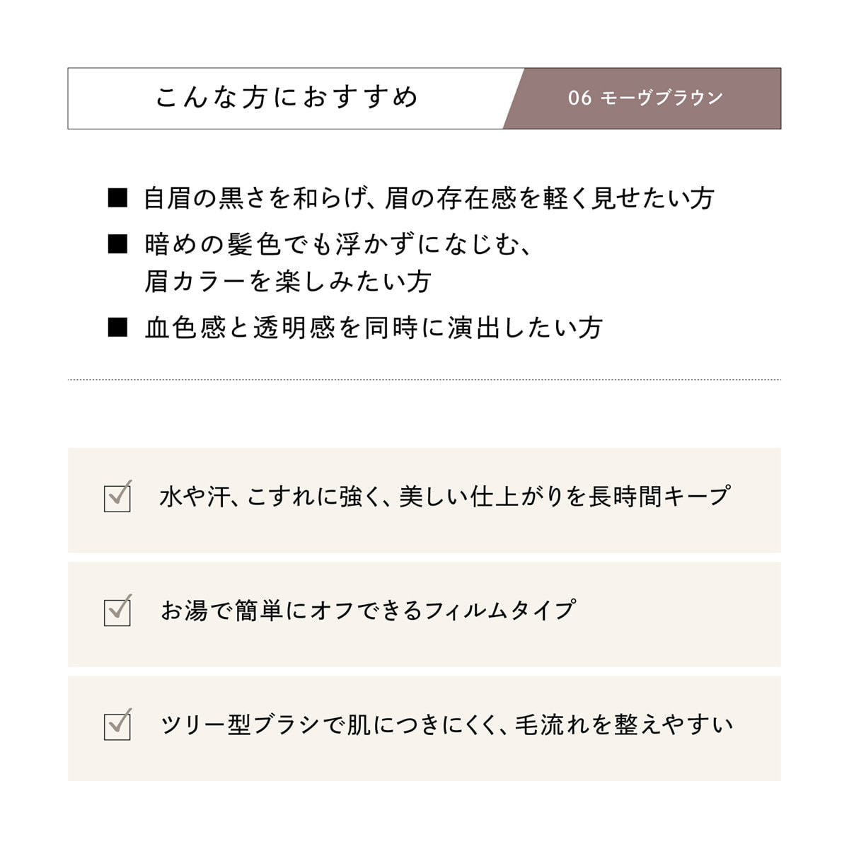 深みのある印象的な眉を演出する赤みニュアンスのブラウン。