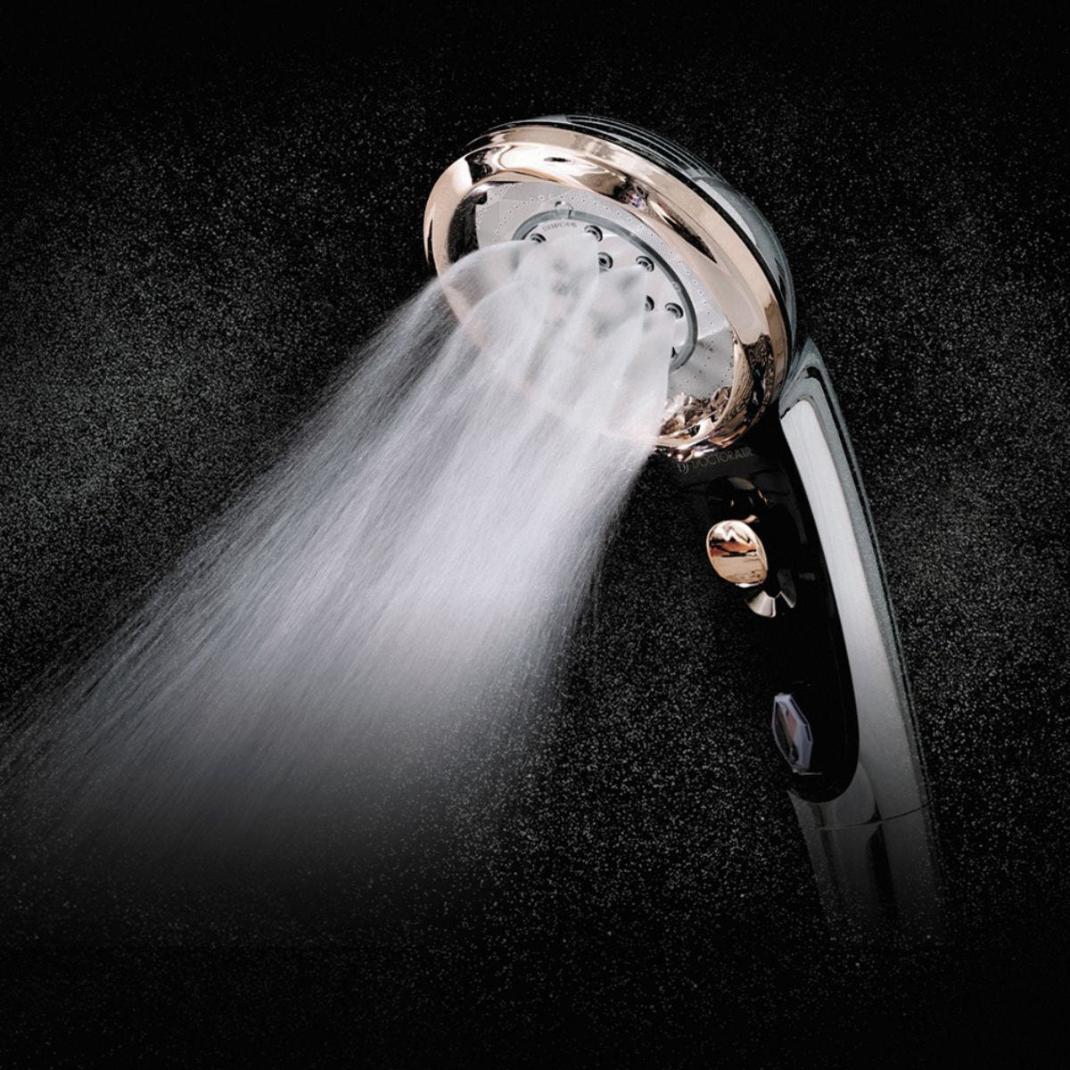 ・ヘッド本体の止水ボタンを押して流水のオンオフを切り替えます。